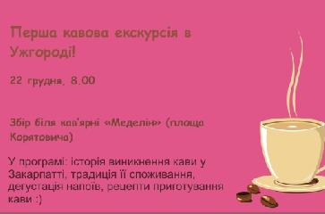 У суботу, 22 грудня, о 8.00 біля кав'ярні "Меделін" (площа Корятовича) стартує перша кавова екскурсія Ужгородом.