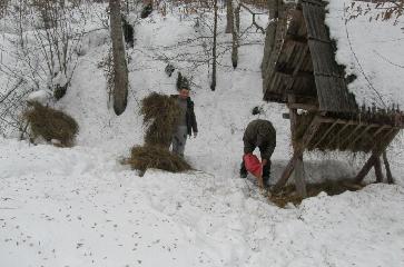 Велика кількість снігу ускладнює життя не тільки людей, а й тварин. У таких умовах їм важче шукати їжу. Тому в мисливських угіддях організовують підгодівлю.