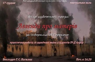 17 грудня, о 16.20 в Ужгородському коледжі культури і мистецтв відбудеться вечір художньої прози.