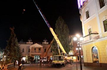 Вчора, 11 грудня, у центрі Мукачева дві години встановлювали святкову ялинку – пишну і рівну.