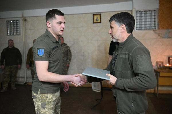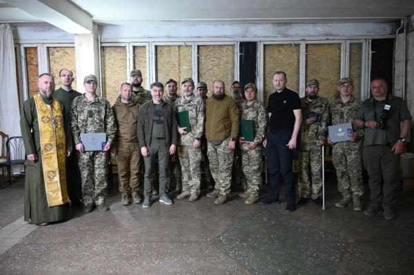 Мали за честь передати трьом захисникам відзнаку Президента «За оборону України»: сержанту Павлу Богданову, старшим сержантам Олександру Сердюку та Володимиру Сомошу.