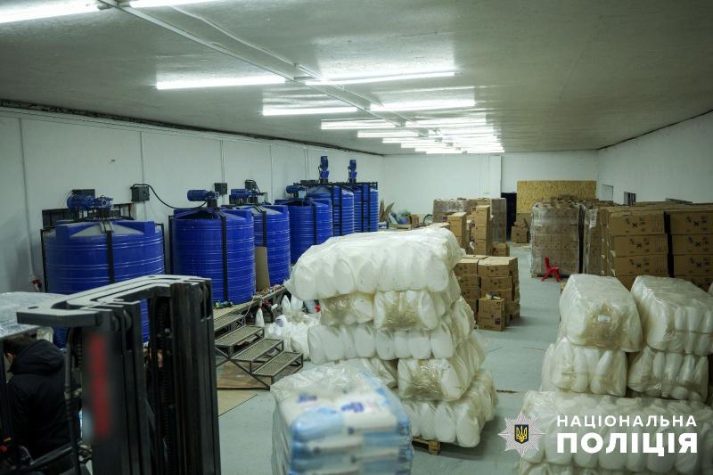 Для припинення такої діяльності за місцем розташування підпільного цеху співробітники поліції провели санкціонований судом обшук. У його результаті з незаконного обігу було вилучено загалом майже 25 тонн рідини, устаткування з двигунами встановлене на лінії виробництва, партію готової продукції (орієнтовно 12 тонн) та 800 літрів концентрату. Також вилучено поліграфічну продукцію та порожні ємності, які використовували для пакування фальсифікату.