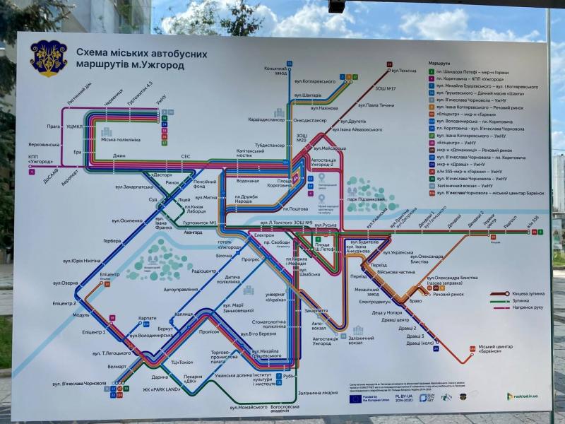 На 30 автобусних зупинках додатково розміщено схему руху громадського транспорту Ужгорода збільшеного формату, що допоможе пасажирам краще орієнтуватися в місті.
